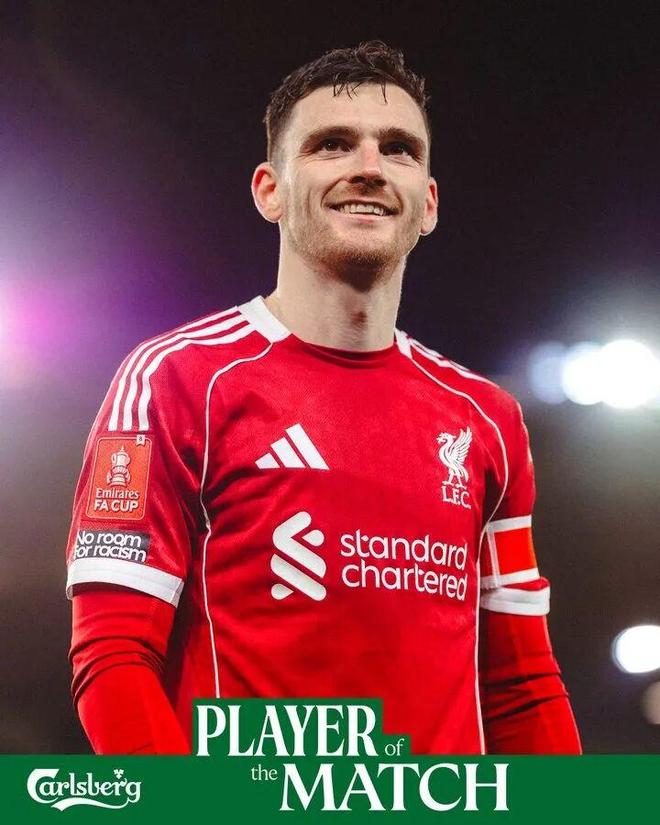 罗伯逊本场传射建功,赛后当选利物浦队内最佳球员。
